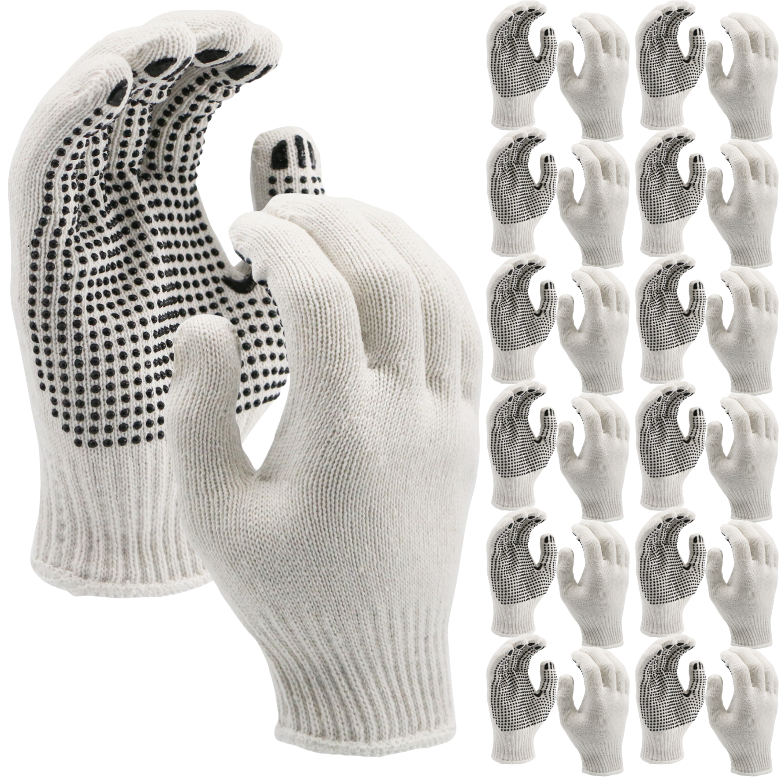 Knitted Poly Cotton Gloves With PVC Dots - 12 Pairs