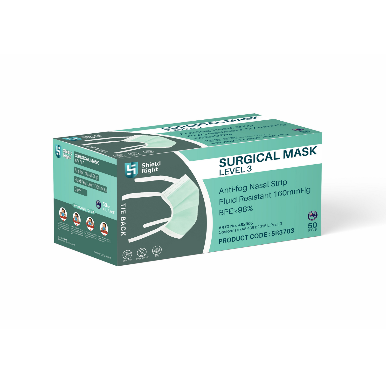 Shield Right Surgical Mask Level 3 – Tie-Back (50 Pcs)