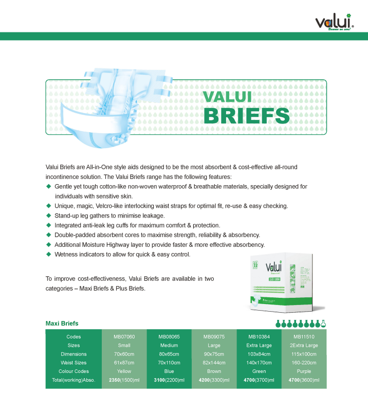 The Valui Night Maxi Briefs are made from super soft cotton-like and non-woven waterproof outer materials; and designed with added thickness built through the centre of the briefs for extra strength.